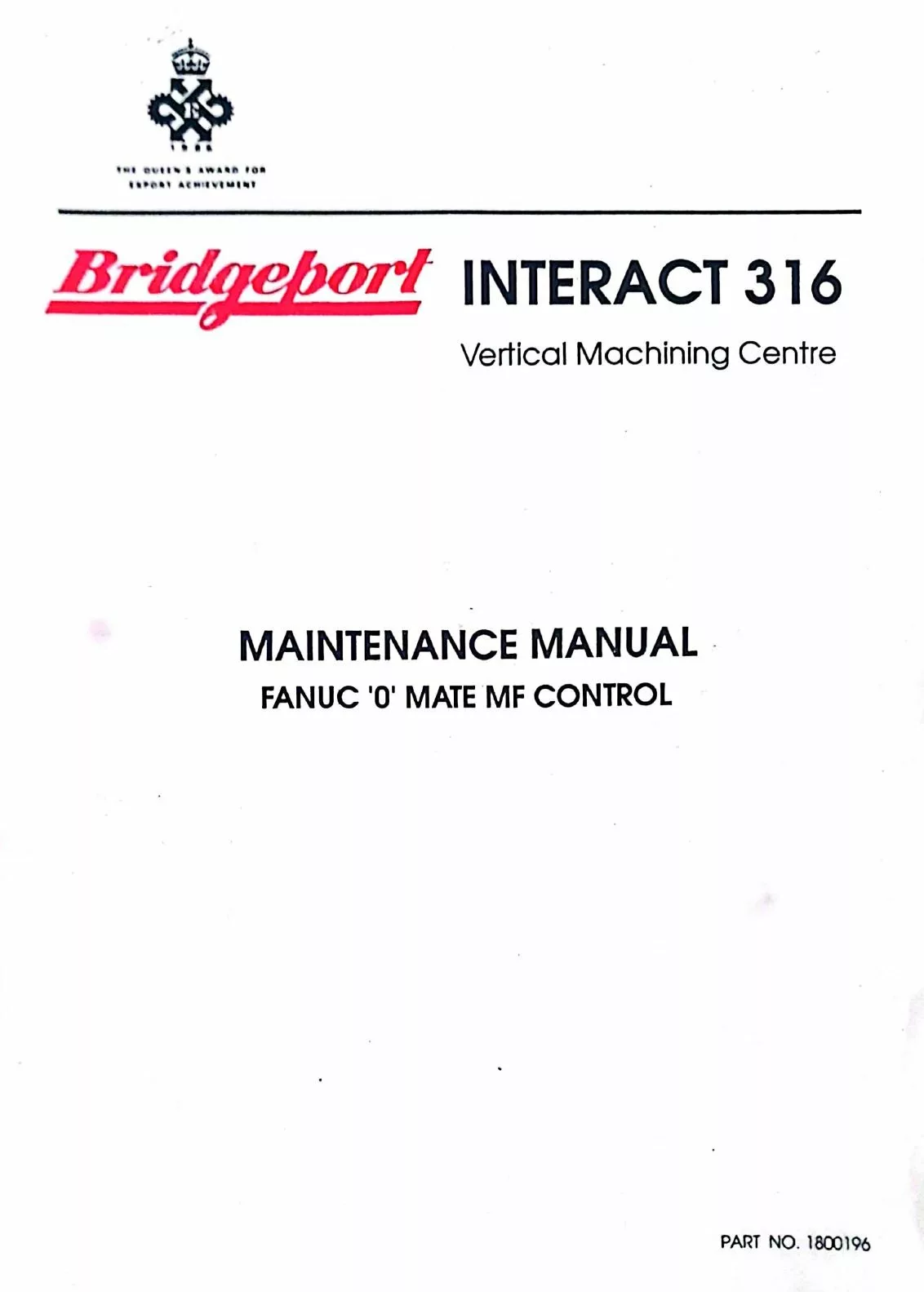 Download this complete PDF of the original Bridgeport Interact 316 Maintenance Manual with Fanuc 0 Mate MF Control.