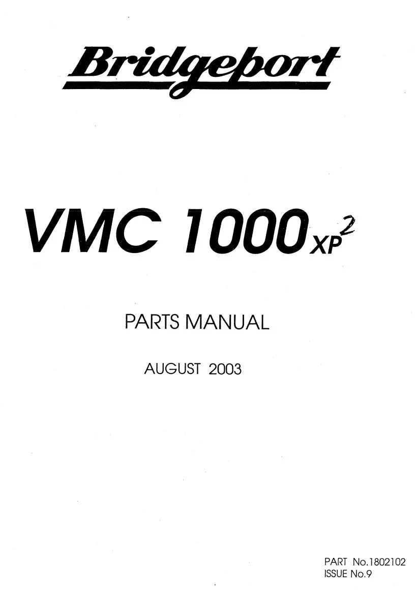 This is the complete Parts list manual for the Bridgeport VMC 1000 XP2. It contains complete parts list and drawings consisting of 180 pages and was pubslished in 2003.