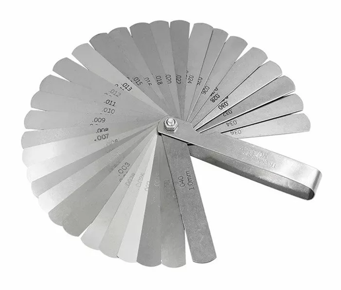 Estimated Delivery on 16, April 2026A set of 32 Stainless Steel Metric Feeler Gauges ranging from 0.02mm to 1mm